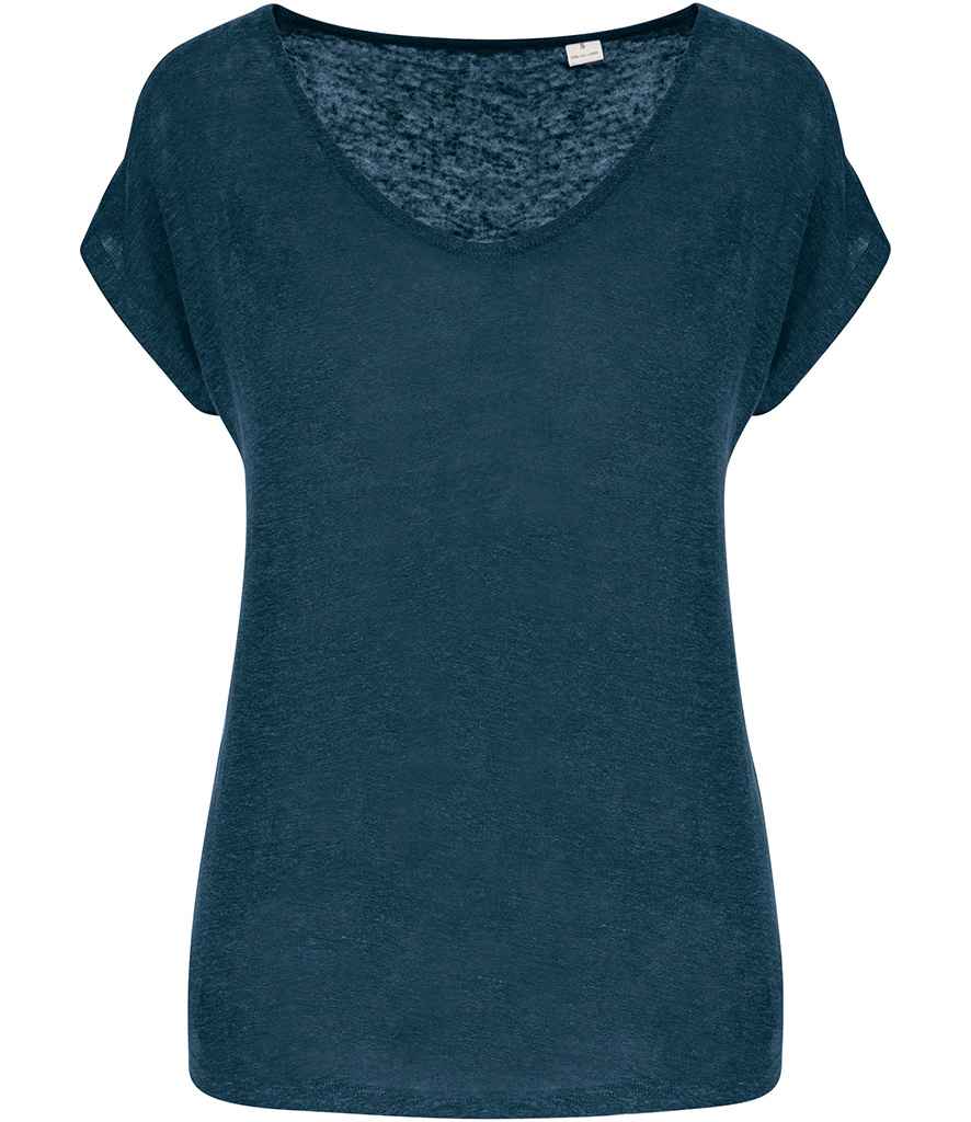 Native Spirit Ladies V Neck Linen T-Shirt - Peacock Blue