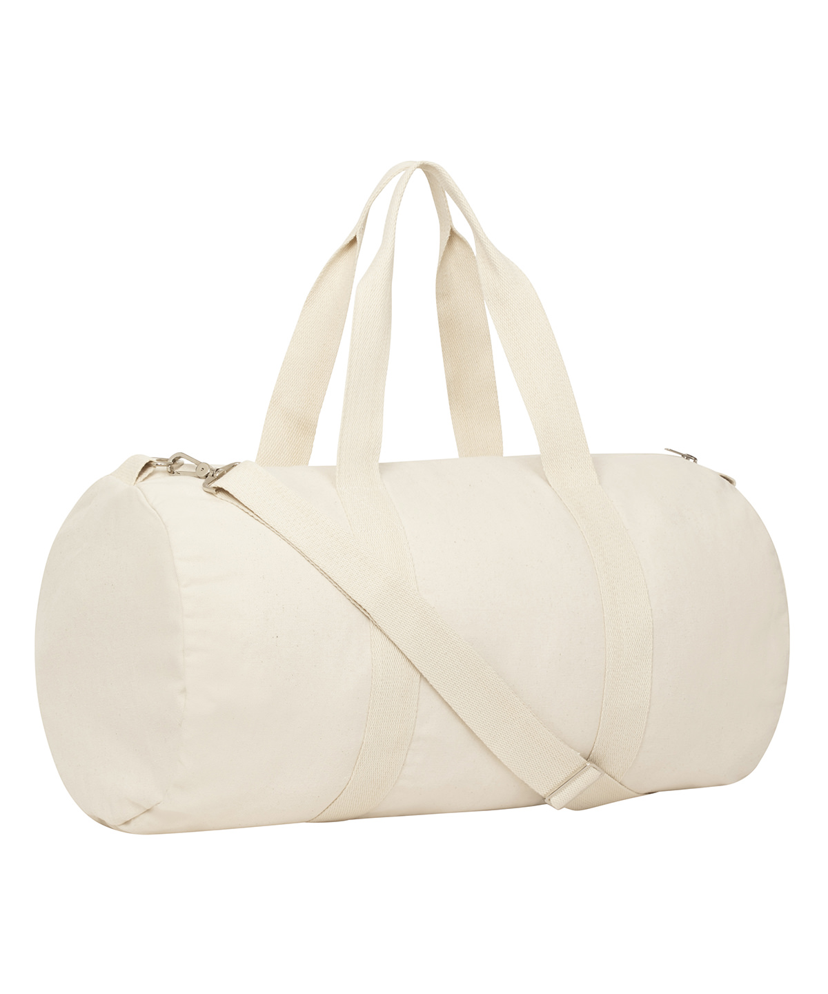 Lightweight duffle bag made with super-soft 100% recycled polyester. The bag is fully lined. It has an inside zip pocket, outside pocket and detachable adjustable shoulder straps.